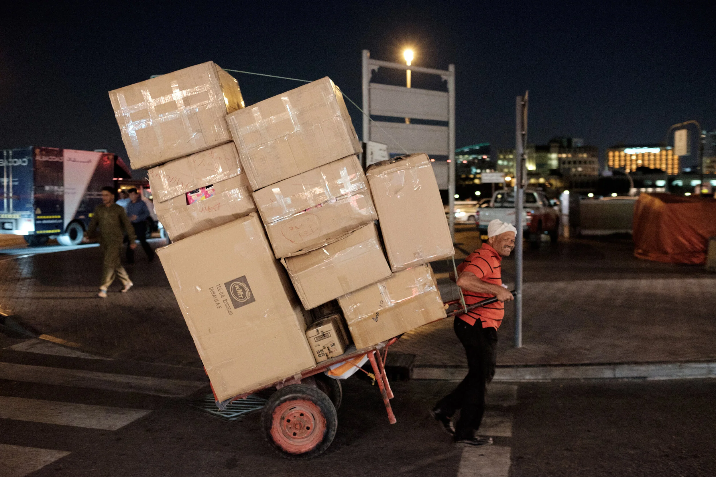 The freight is loaded onto the boats on the docks of the Baniyas Road docks in Old Dubai