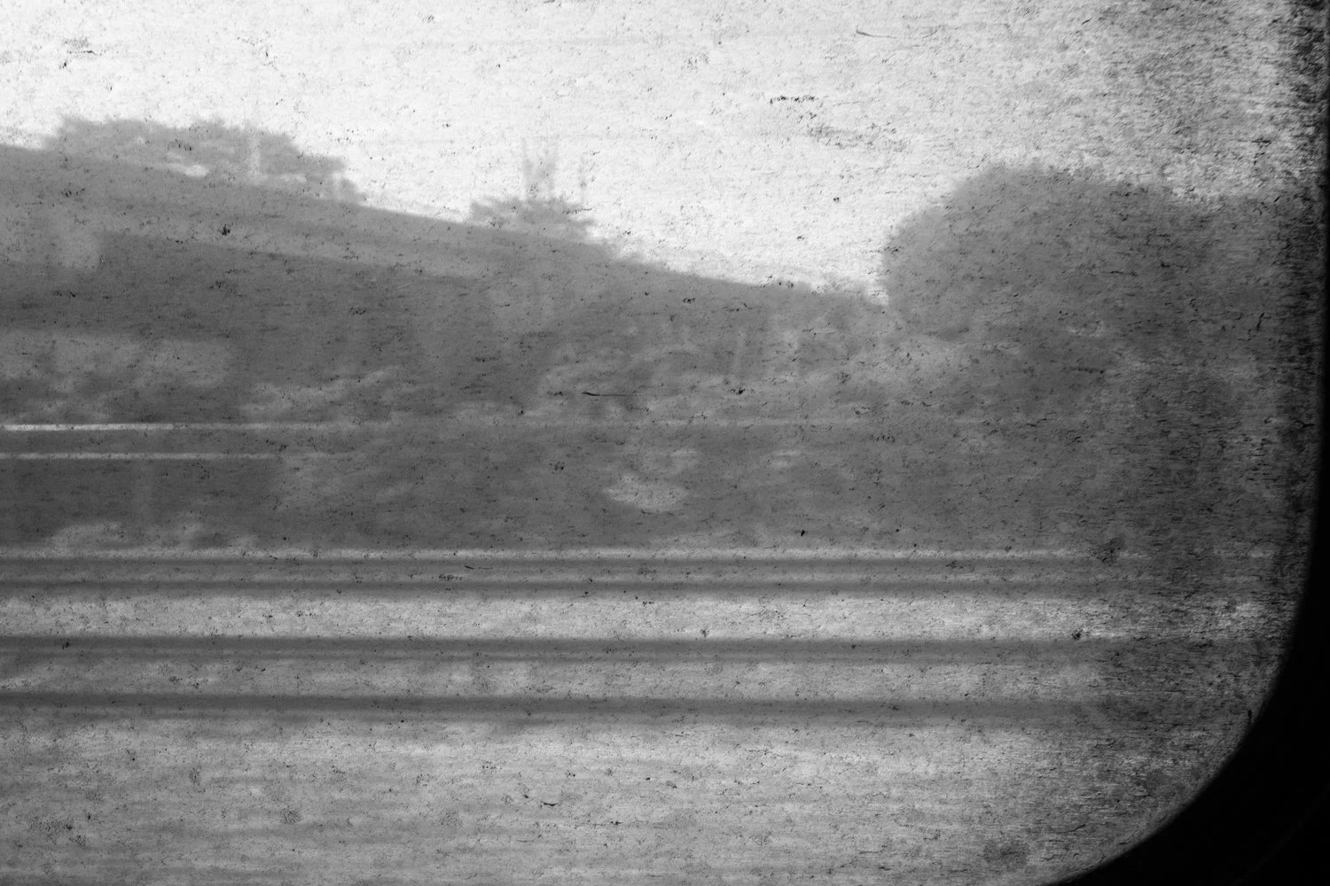 The person who cleans the train's windows must have had the day off. A thick layer of dust makes for a murky view. The landscape opens up, and urban gardens jump out of nowhere, turning into larger fields.