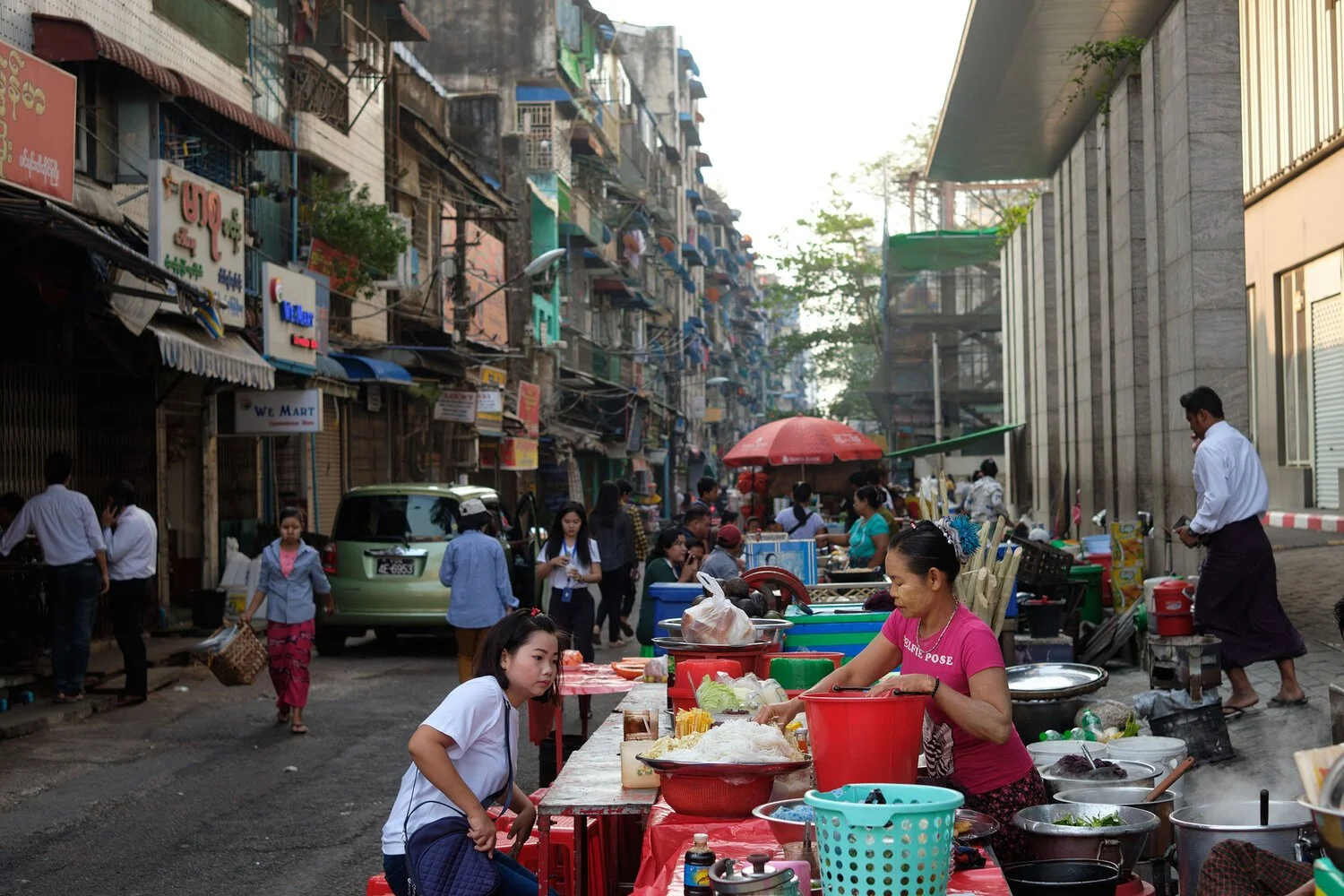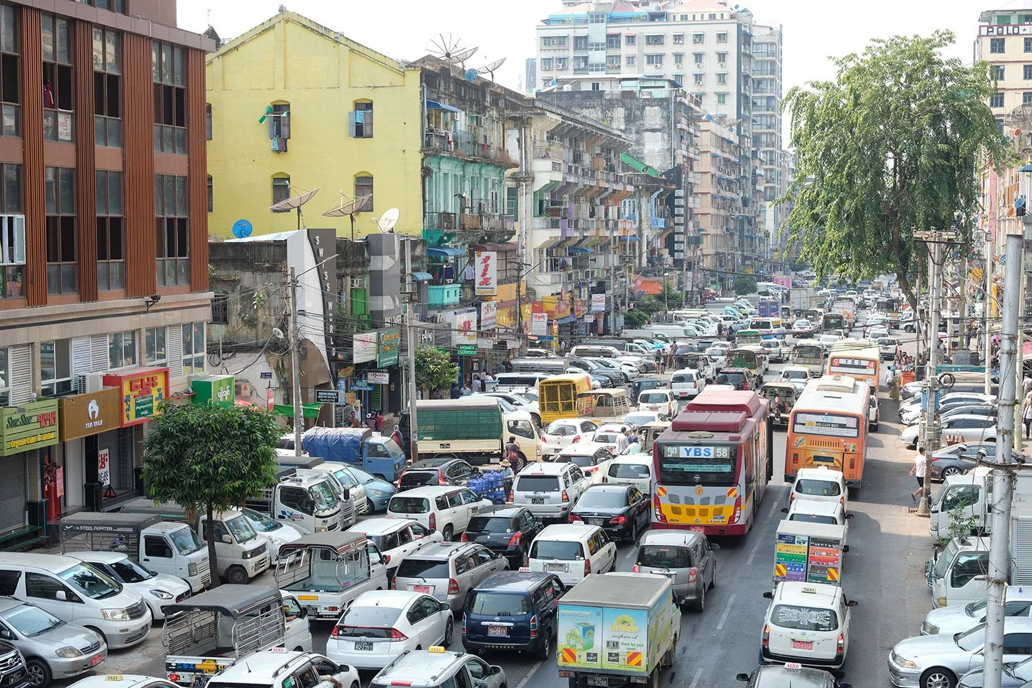 Yangon is the largest city in Myanmar. In its core, British colonial architecture is predominant. It is a bustling city with traffic jams, markets, parks, and modern high rises.