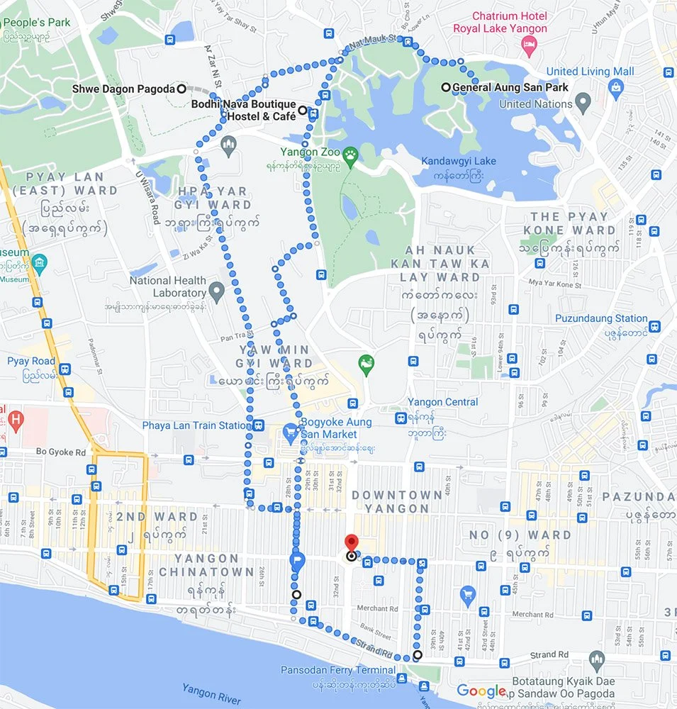 We spent the remaining part of our day walking around the Sule Pagoda and Maha Bandula Park. This was a wonderful experience in the warmth of a January evening.