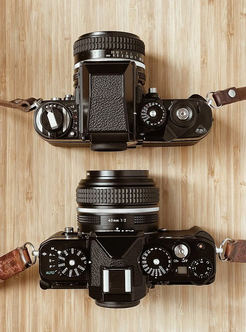 The Nikon Zf next to my Nikon F3 HP