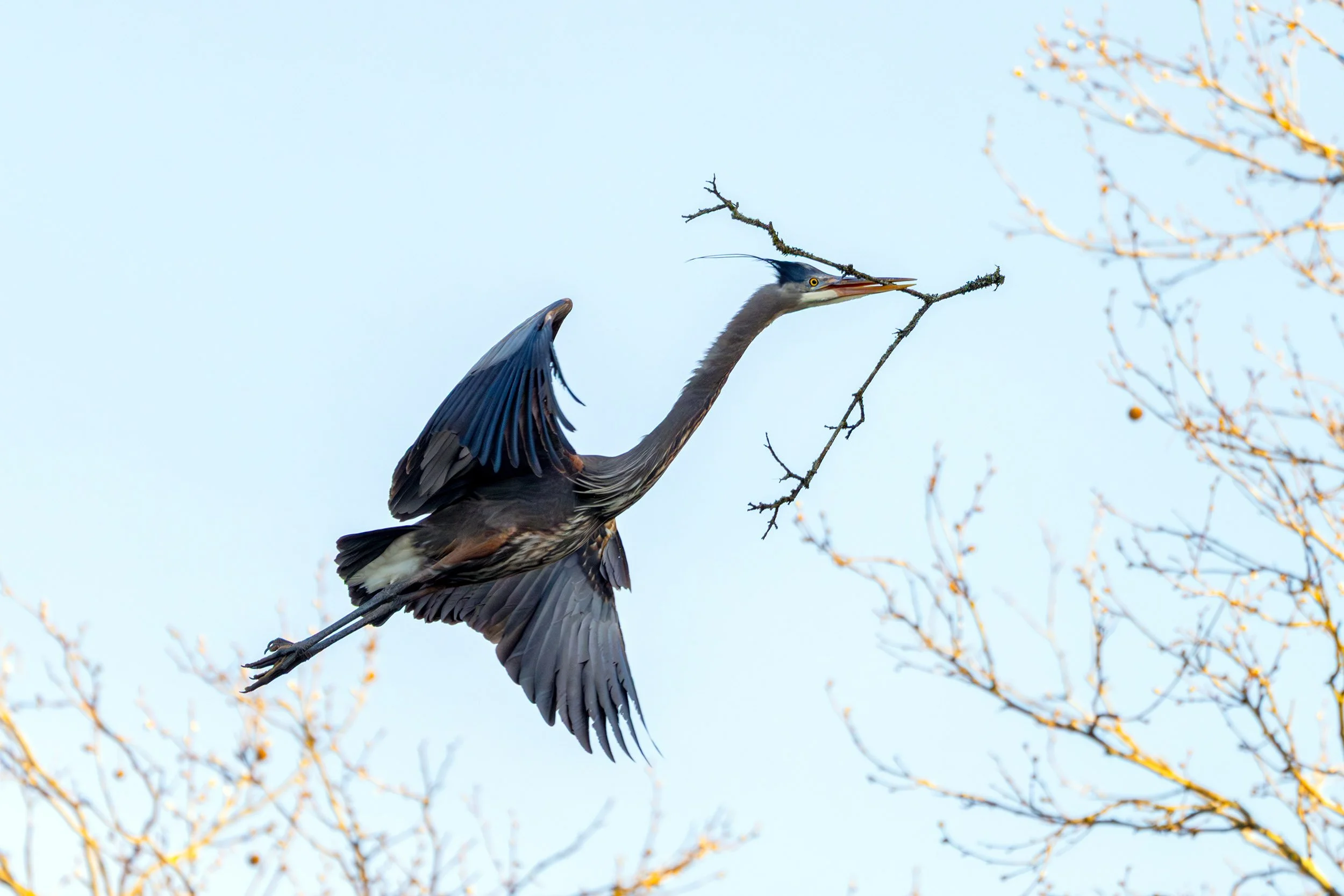 Every year, we watch the Great Blue Herons just a couple of blocks from where we live in Stanley Park. I especially enjoy watching them bring twigs to the nests.